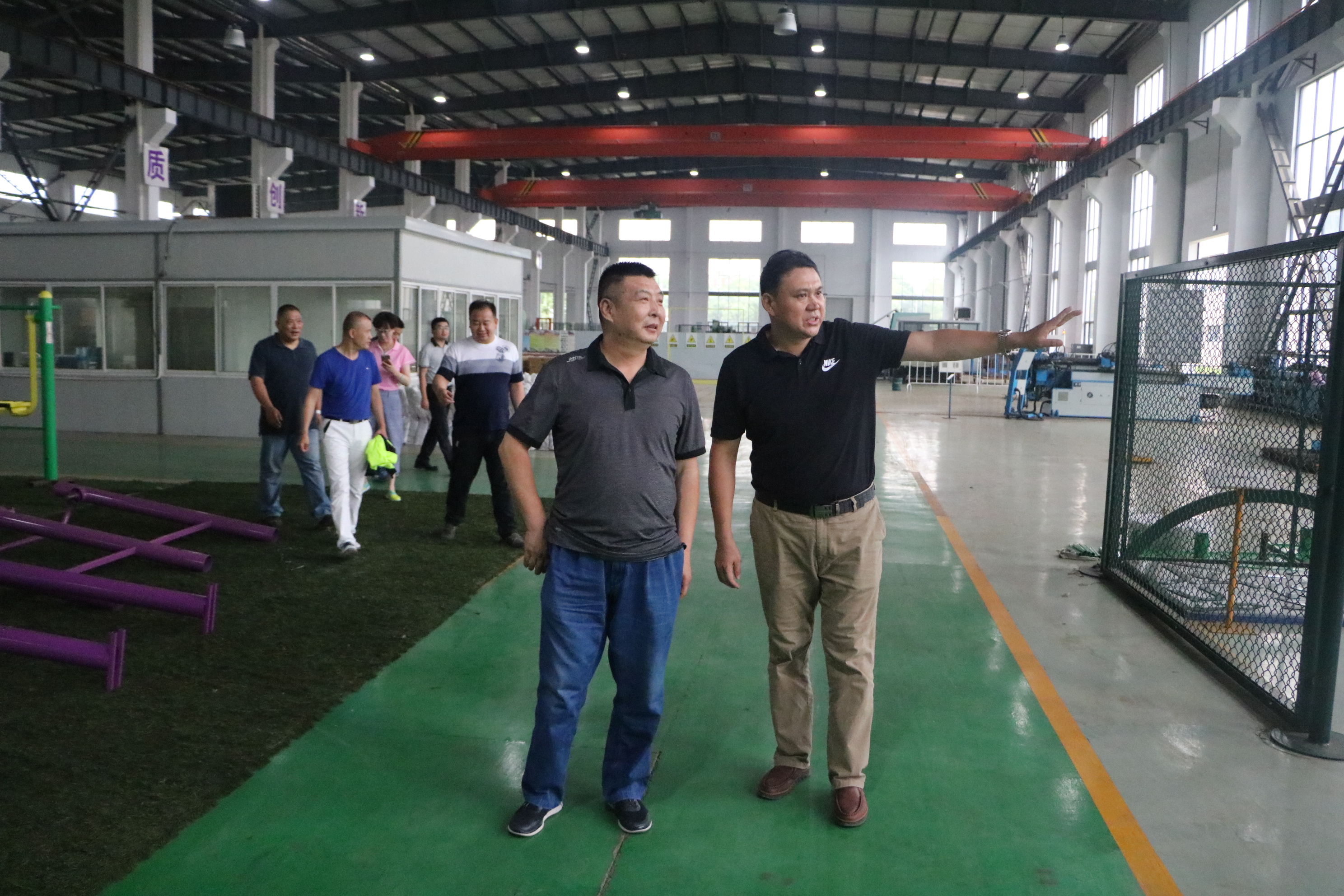2017年8月11日,甘肃省体育局群体处处长武志峰等领导组成的考察团一行赴公司调研指导工作,实地考察参观了公司生产车间、产品展厅和厂区整体环境,公司总经理曹庆江、总经理助理李晟文等领导陪同考察。