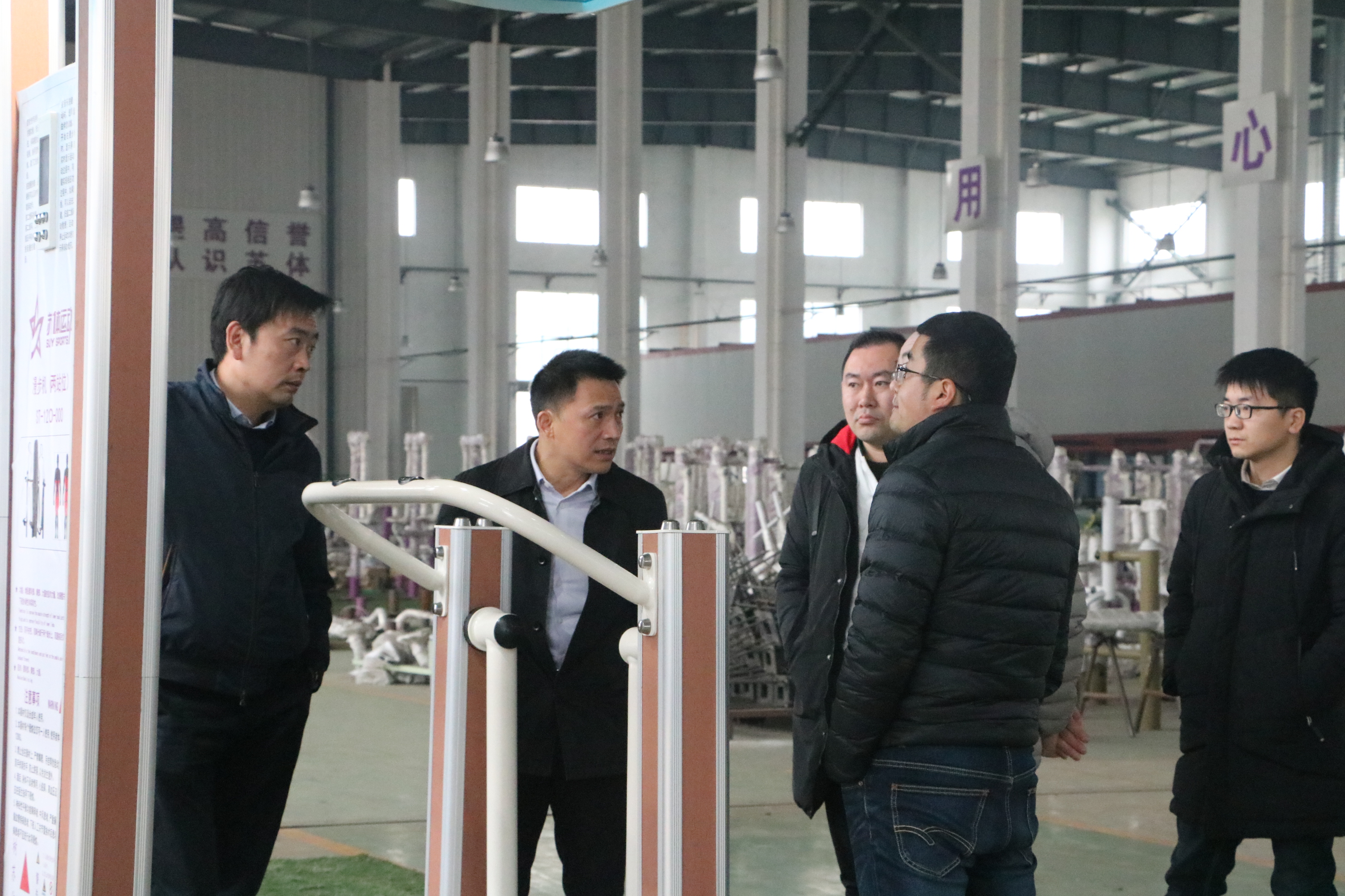 2018年12月19日,苏体产业集团董事长顾晔赴江苏苏体运动有限公司科技进行安全生产检查,公司领导王延玮、李晟文等陪同检查。
