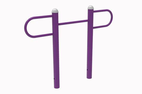 主立柱为(φ114×3.0)mm的标准焊管,两立柱中心距为1086mm,使用高度为721mm,821mm,921 mm三档;横杠采用(φ42×2.5)mm的标准焊管;安装采用直埋方式,立柱下埋深度500mm,单根立柱地基尺寸(500×500×600)mm。